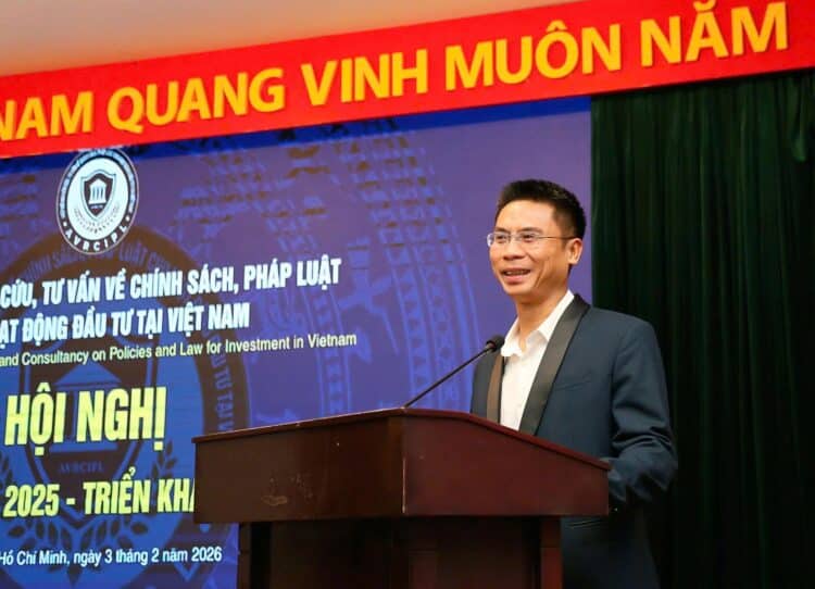 (PTCNO) – Vừa qua, tại Nhà khách Quốc hội phía Nam, Hiệp hội Nghiên cứu Tư vấn Chính sách, Pháp luật cho hoạt động đầu tư tại Việt Nam (AVRCIPL) đã tổ chức Hội nghị tổng kết công tác Hiệp hội năm 2025 và triển khai nhiệm vụ năm 2026 vào ngày 03/02/2026. Chủ trì Hội nghị có ông Trần Sơn Vũ – Chủ tịch Hiệp hội AVRCIPL; ông Trần Tuấn Hải – Phó Chủ tịch Thường trực Hiệp hội AVRCIPL; ông Hồ Minh Sơn – Phó Chủ tịch – Tổng Thư ký Hiệp hội AVRCIPL; ông Phan Khôi Tường – Phó Chủ tịch Hiệp hội AVRCIPL; ông Trần Thành Mai – Phó Chủ tịch Hiệp hội AVRCIPL…