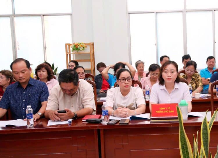 Tại hội nghị, Bác sĩ Nguyễn Thị Ngọc Thi – Trưởng trạm Y tế phường Phú Định đã trình bày tham luận về thực trạng công tác chăm sóc sức khỏe ban đầu tại địa phương. Bác sĩ nhấn mạnh những kết quả nổi bật như tỷ lệ tiêm chủng đạt trên 95%, công tác phòng chống dịch bệnh được duy trì thường xuyên, nhưng cũng nêu rõ những khó khăn về cơ sở vật chất, trang thiết bị. Bác sĩ Ngọc Thi đề xuất cần tăng cường đầu tư trang thiết bị khám chữa bệnh, mở các lớp tập huấn chuyên môn cho cán bộ y tế cơ sở và đẩy mạnh truyền thông giáo dục sức khỏe trong cộng đồng.