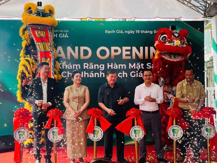 (PTCNO) – Mới đây, Hệ thống Bệnh viện Răng Hàm Mặt Sài Gòn chính thức khai trương Phòng khám chuyên khoa răng hàm mặt Sài Gòn chi nhánh Rạch Giá (toạ lạc tại Lô D5, Căn 7-8, đường 3/2, phường Rạch Giá, tỉnh An Giang) vào sáng ngày 19/04/2026. Sự kiện đánh dấu bước phát triển mới, đưa dịch vụ nha khoa tiêu chuẩn quốc tế đến gần hơn với người dân vùng biển An Giang. Chủ trì buổi lễ có ThS.BS. Nguyễn Quang Tiến – CEO Bệnh viện Răng Hàm Mặt Sài Gòn; ThS.BSCKII Phạm Thuý Duyên – Giám đốc chuyên môn Phòng khám Răng Hàm Mặt Sài Gòn – Rạch Giá; cùng đại diện các Y bác sĩ chuyên khoa của hệ thống BV RHM SG…