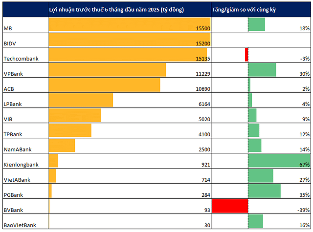 Trong bối cảnh thị trường tài chính có nhiều biến động và áp lực cạnh tranh gay gắt, MB đã vượt lên dẫn đầu về lợi nhuận trước thuế trong số các nhà băng đã công bố kết quả kinh doanh quý II/2025: