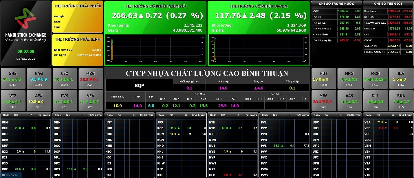 (PTCNO) – Ngày 05/11/2025, Công ty Cổ phần Nhựa Chất lượng cao Bình Thuận (mã chứng khoán: BQP) chính thức niêm yết trên sàn chứng khoán UPCOM thuộc Sở Giao dịch Chứng khoán Hà Nội (HNX), trở thành cổ phiếu thứ 906 trên sàn.