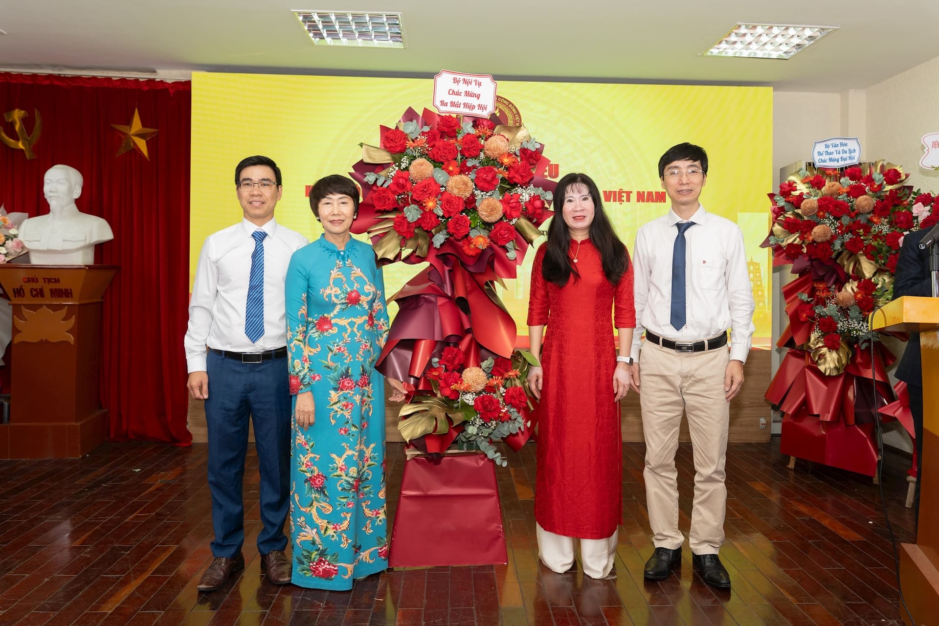 Đại diện Cục Văn hóa cơ sở, Gia đình và thư viện (Bộ Văn hóa, Thể thao và Du lịch) tặng hoa Ban Thường vụ Hiệp hội.
